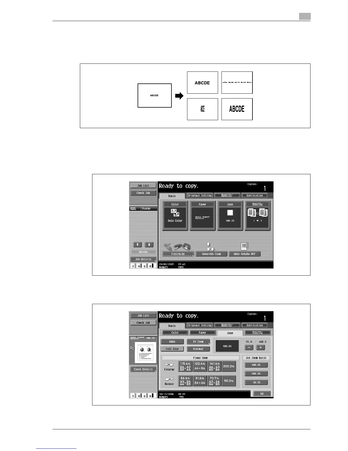 By combining different horizontal and vertical zoom ratios, the copy image can be adjusted as shown below.