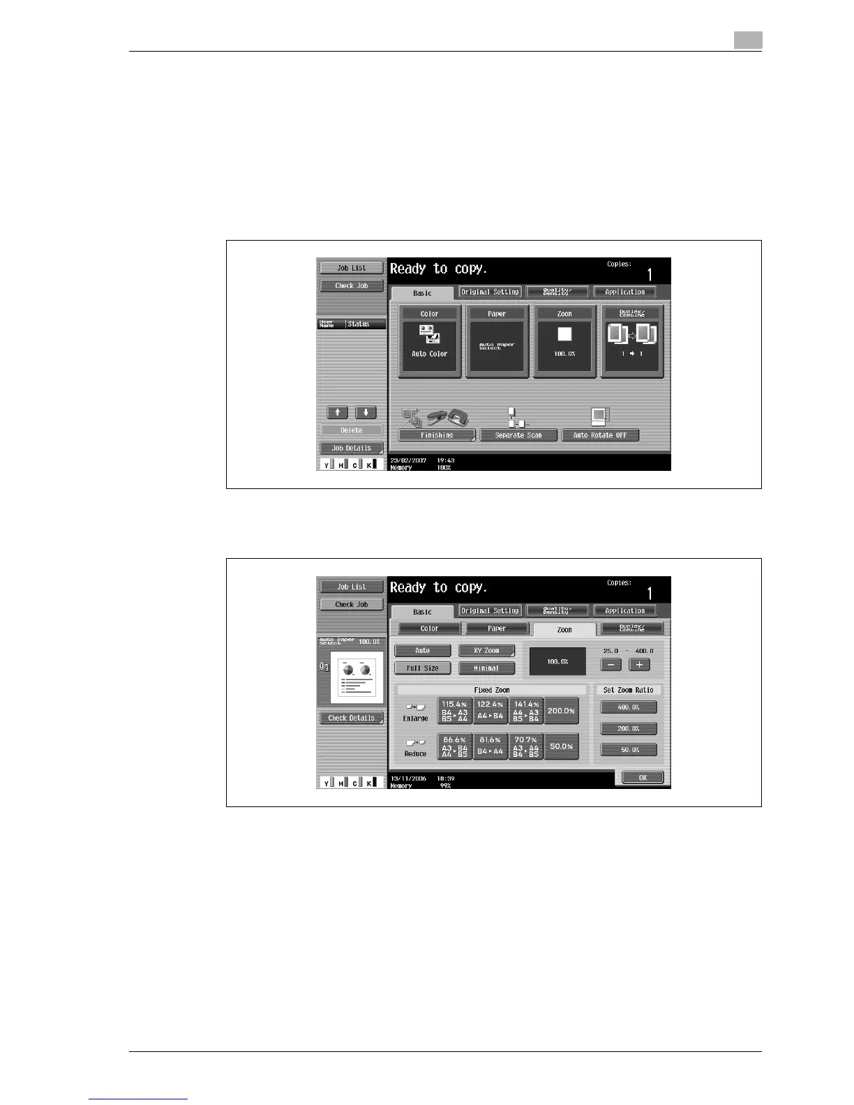 Copy zoom ratios that have been stored can be recalled to be used when desired.