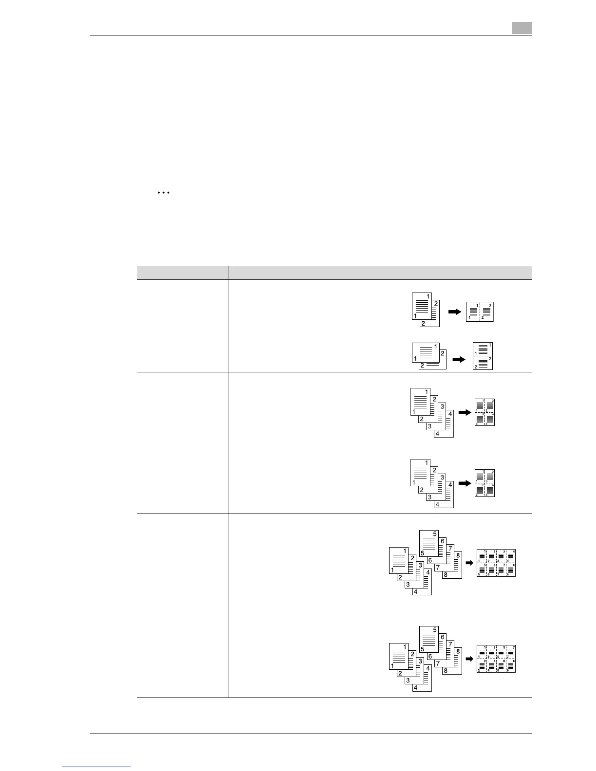 Original images of multiple pages (2, 4 or 8 pages) can be combined and printed on a single page, reducing