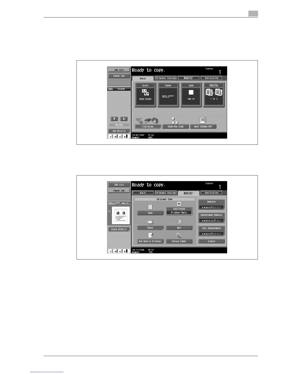 3 Touch the button for the quality setting most appropriate for the loaded original.