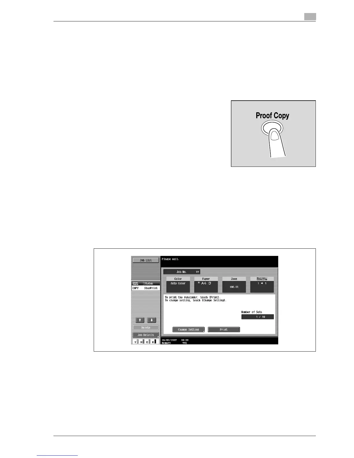 – If the original was loaded into the ADF, printing of the proof copy begins without the screen