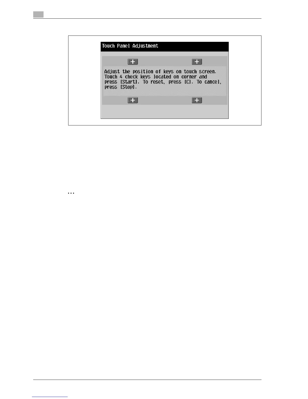 To cancel the touch panel adjustment, press the [Stop] key or the [Reset] key.