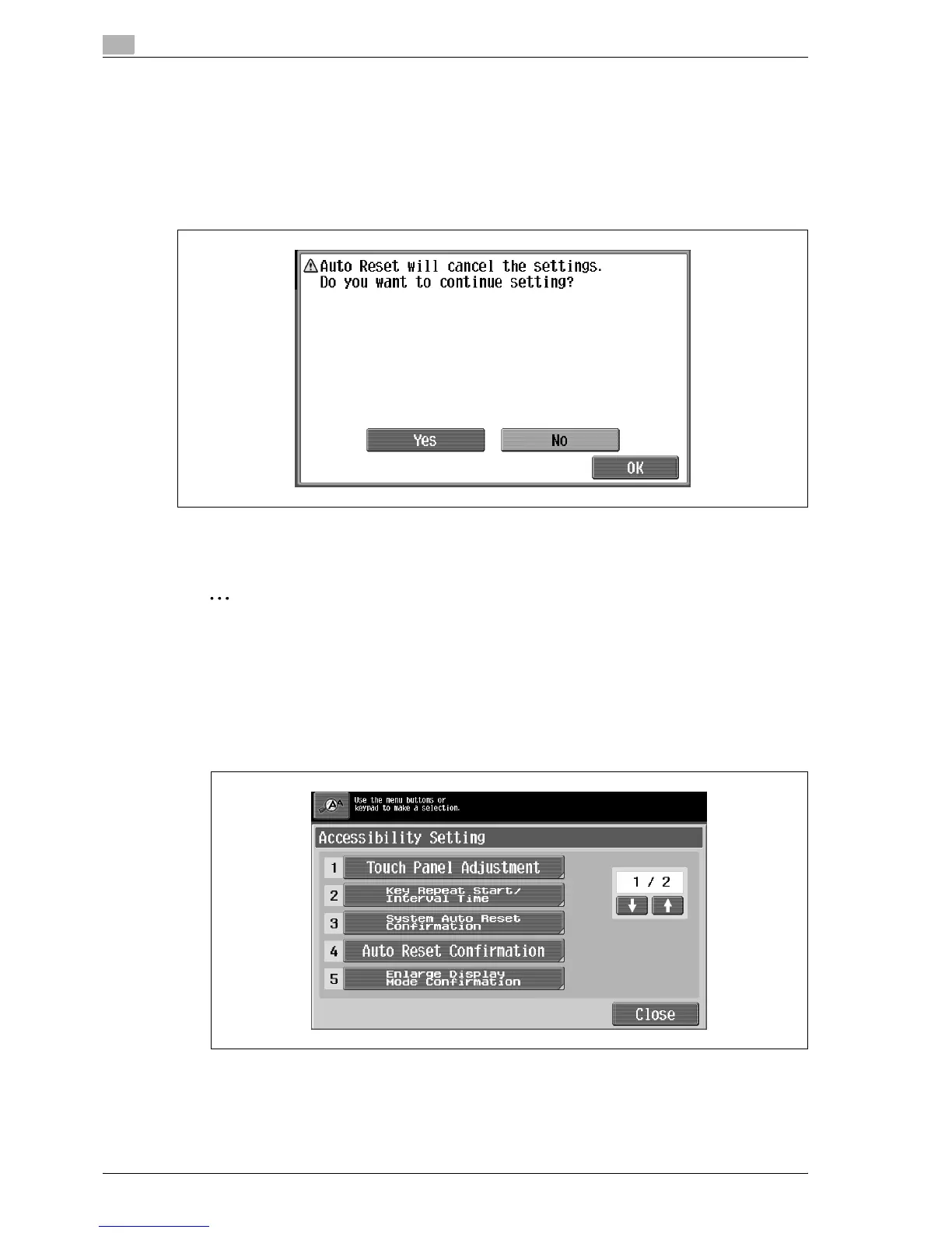 2 Touch [Auto Reset Confirmation] or press the [4] key in the keypad.
