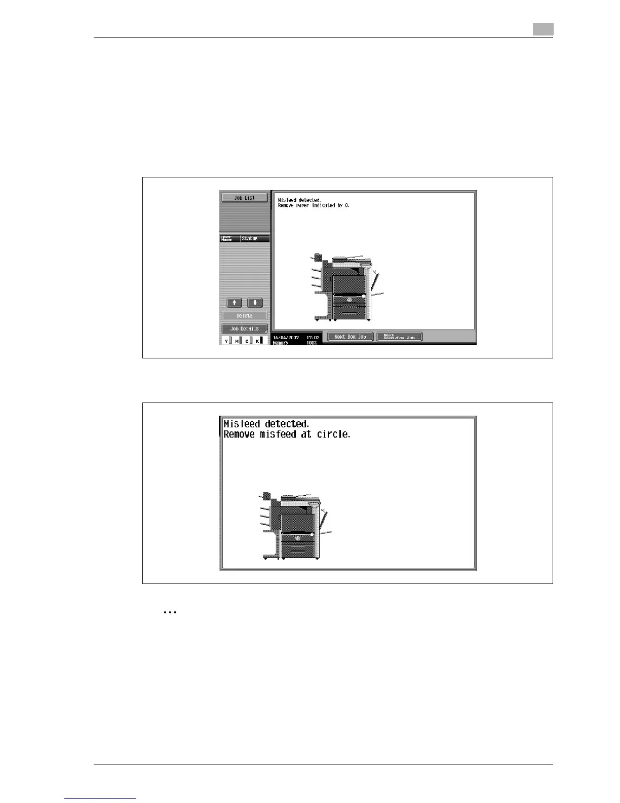 If a paper misfeed occurs, the screen shown below appears.