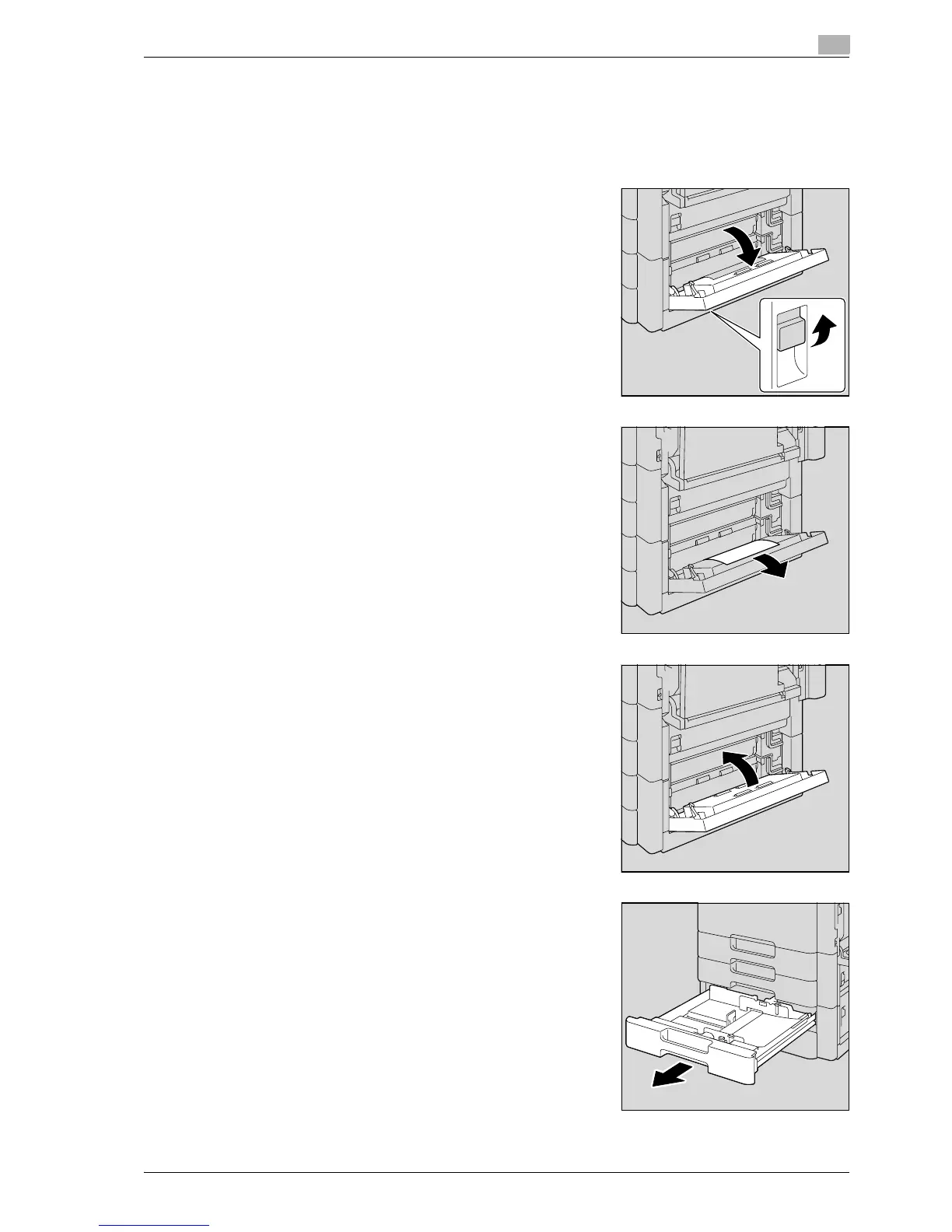 5.2.15 Clearing a paper misfeed in paper feed cabinet (Tray 3/4)