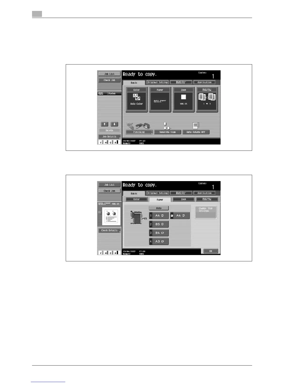 1 In the Basic screen, touch [Paper].