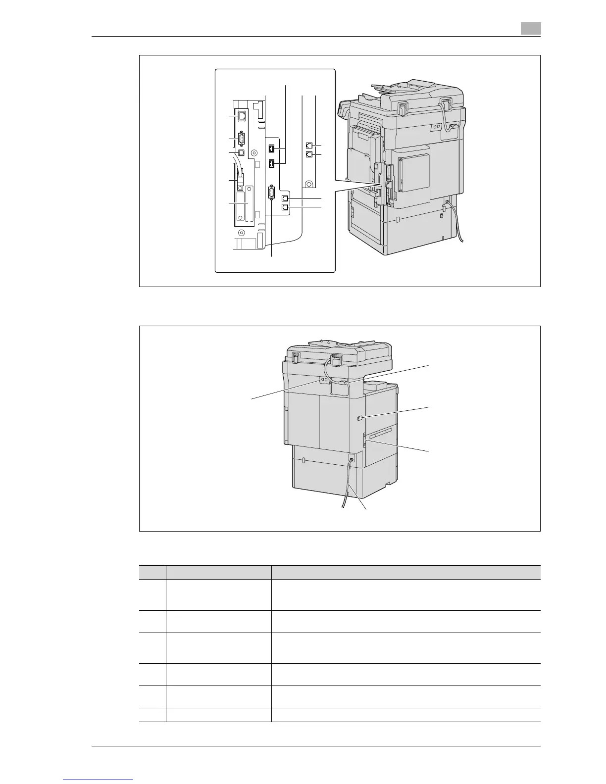 The illustration above shows the main unit with the optional fax multi line, ADF, LCT and mount kit (fax kit,