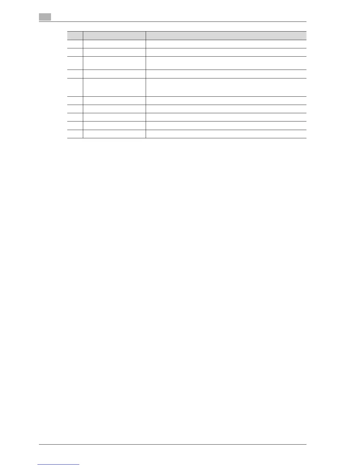 No. Part name Description