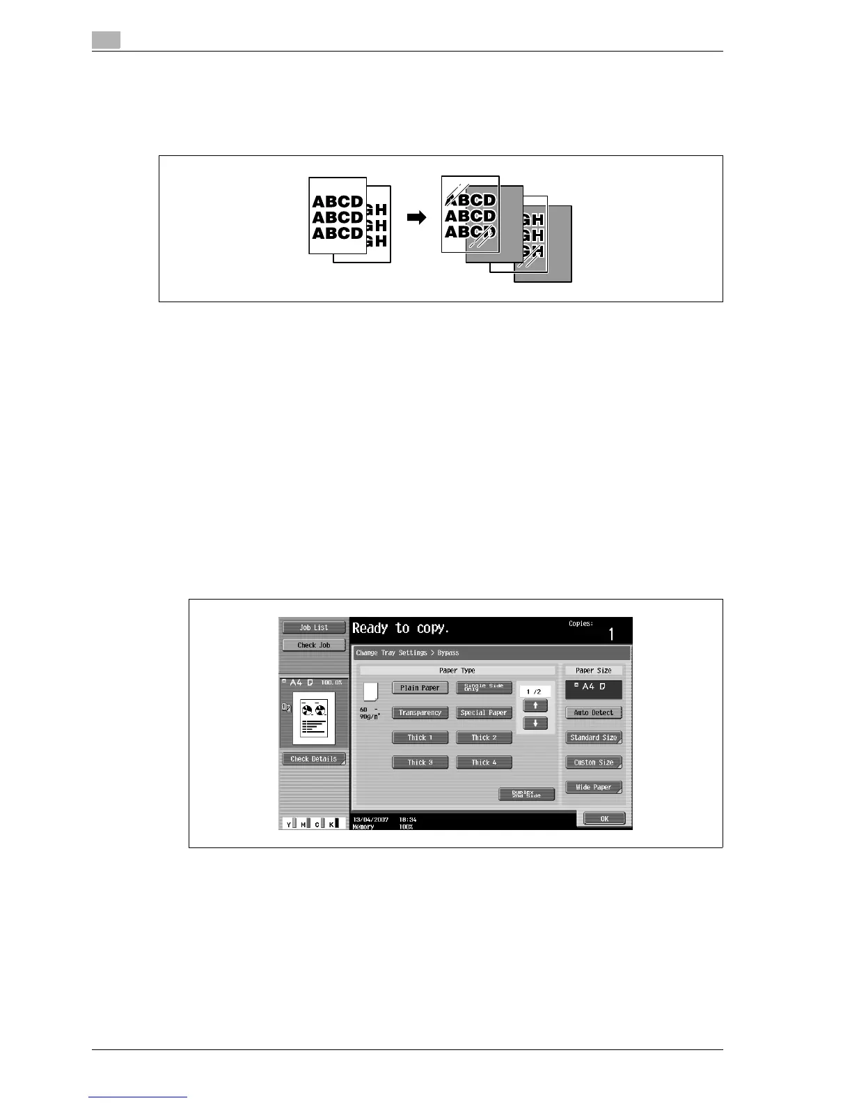 4 Select [Transparency] as the paper type for the bypass tray, and then touch [OK].