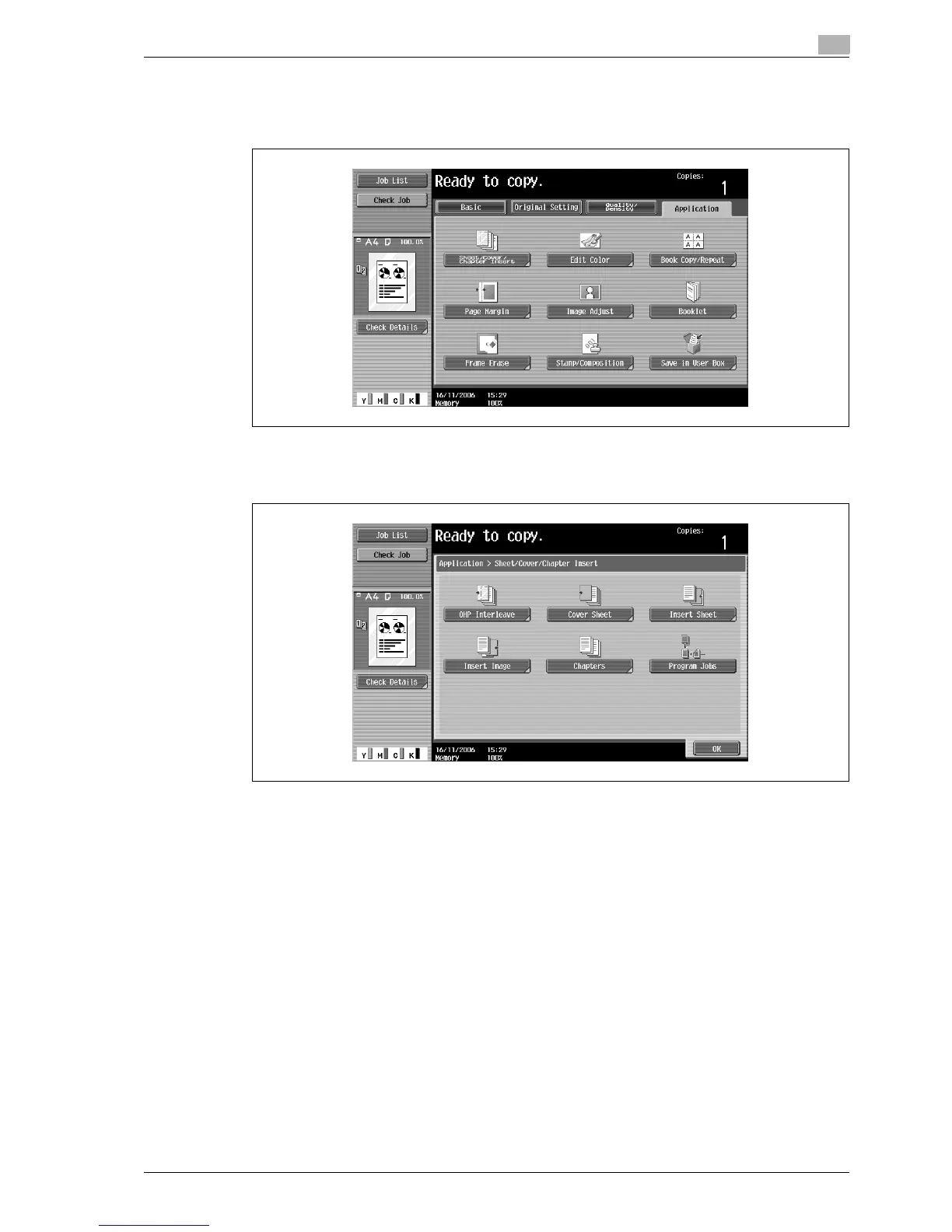 5 Touch [Application], and then touch [Sheet/Cover/Chapter Insert].