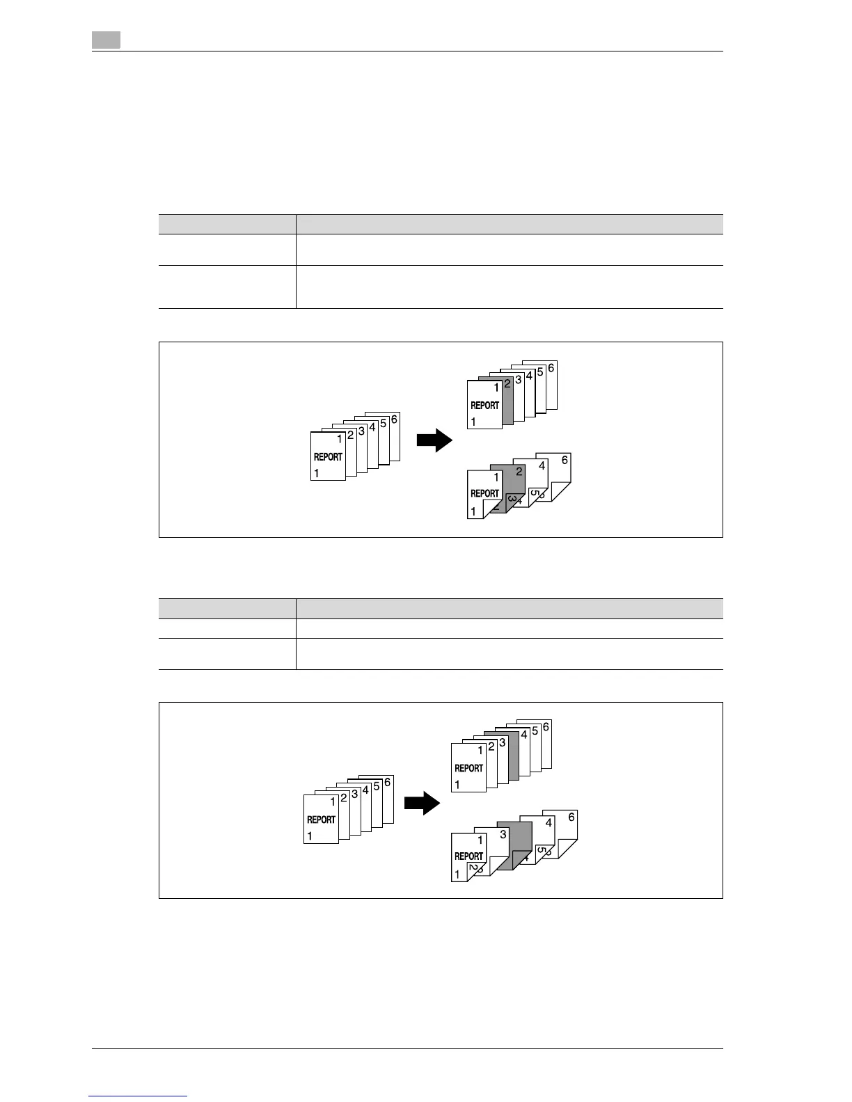 Double-sided copies The back side of the 1st sheet of the copy is left blank, the specified paper is inserted for