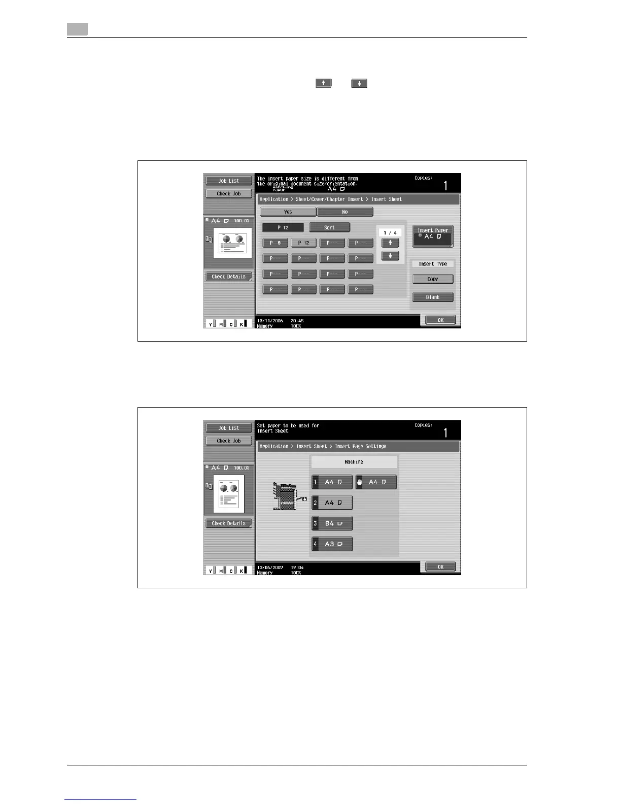 7 Select the paper tray loaded with the paper for the insertion sheets, and then touch [OK].