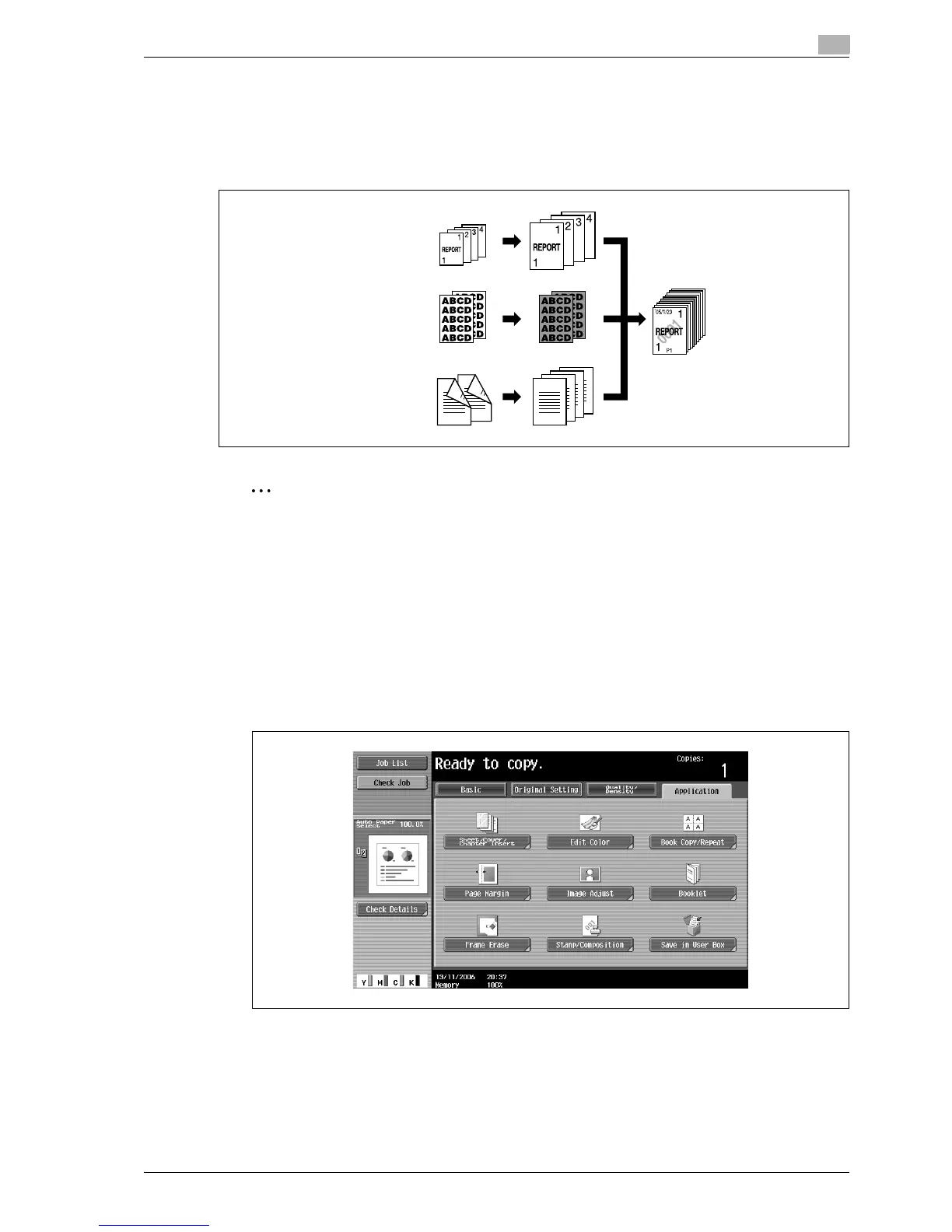 Different Zoom or Paper settings can be specified for a part of the original or Finishing settings or a numbering