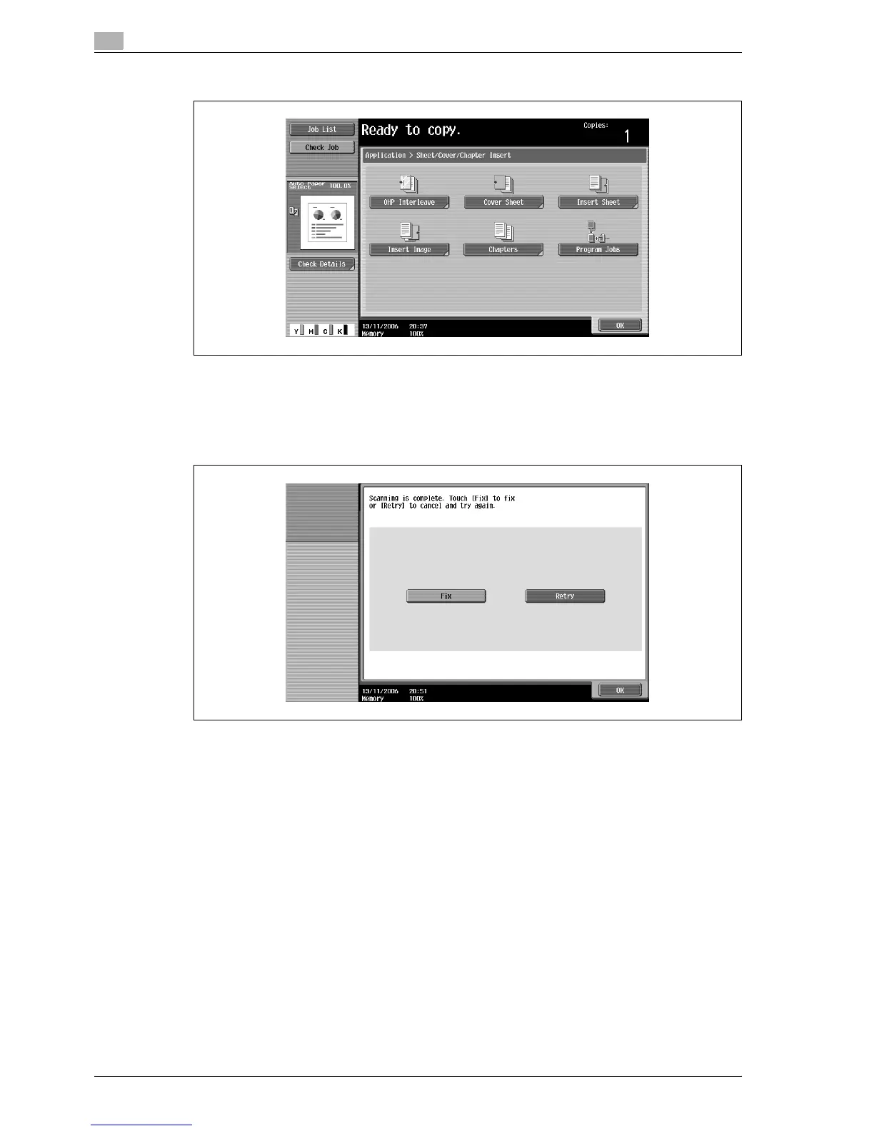 – If "Retry" was selected, touch [Change Setting] to change the copy settings.