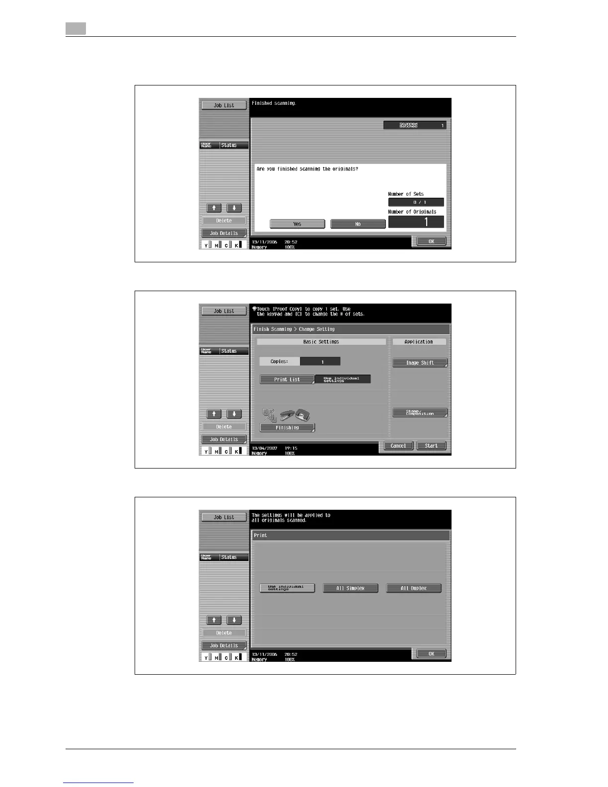 – Touch [Print List], and then specify the printing method for the entire scanned original.