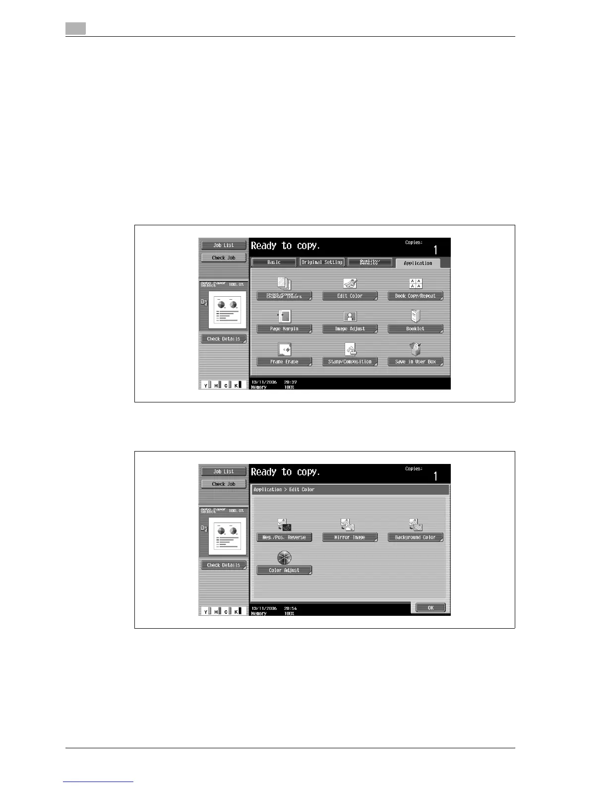 This function allows you to copy an original using one of the 18 colors available as the color of the