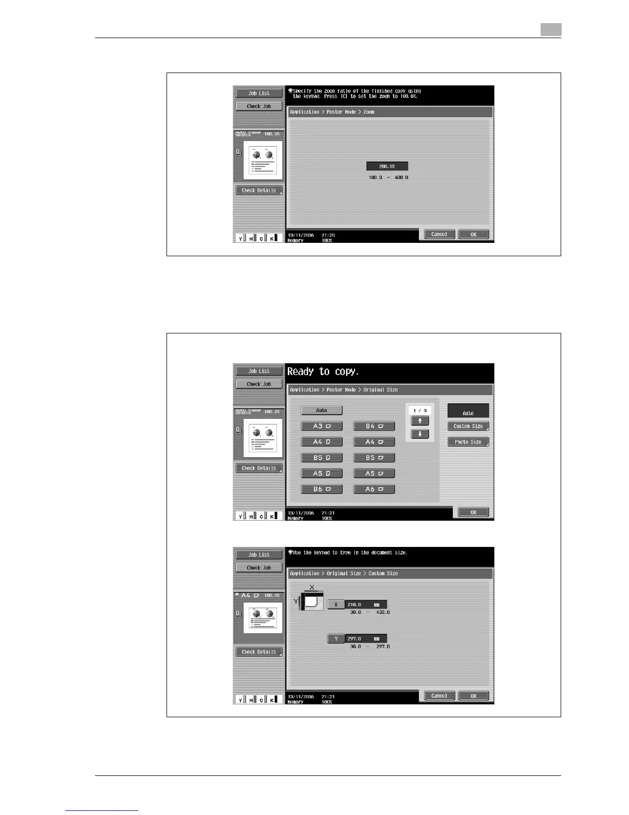 – If the original size cannot be detected automatically or to specify the original size, touch [Original