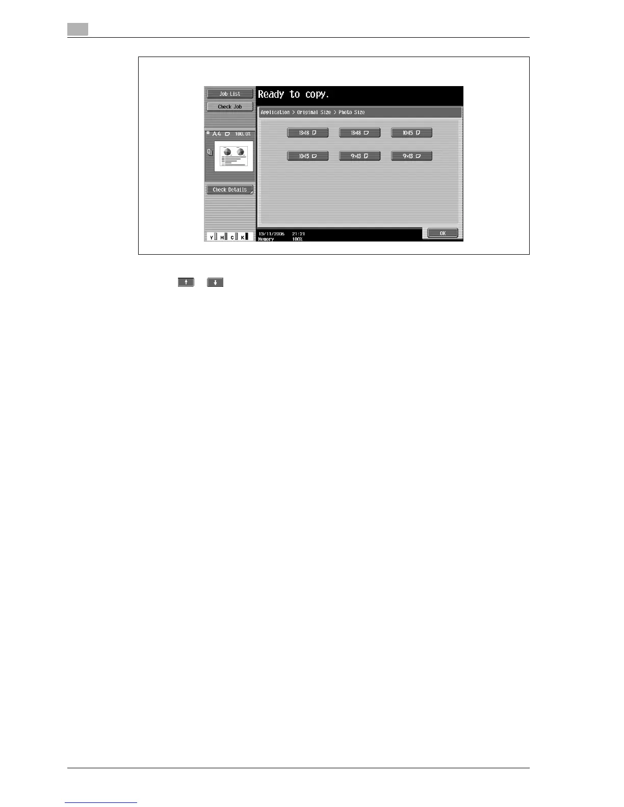 % Any size can be specified from the Custom Size screen. Touch [X] or [Y] to select the dimension,