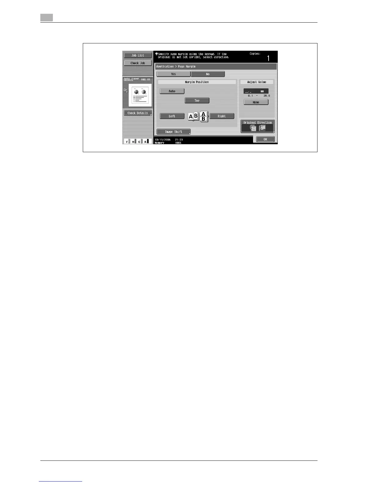 4 Using the keypad, specify the binding margin width.