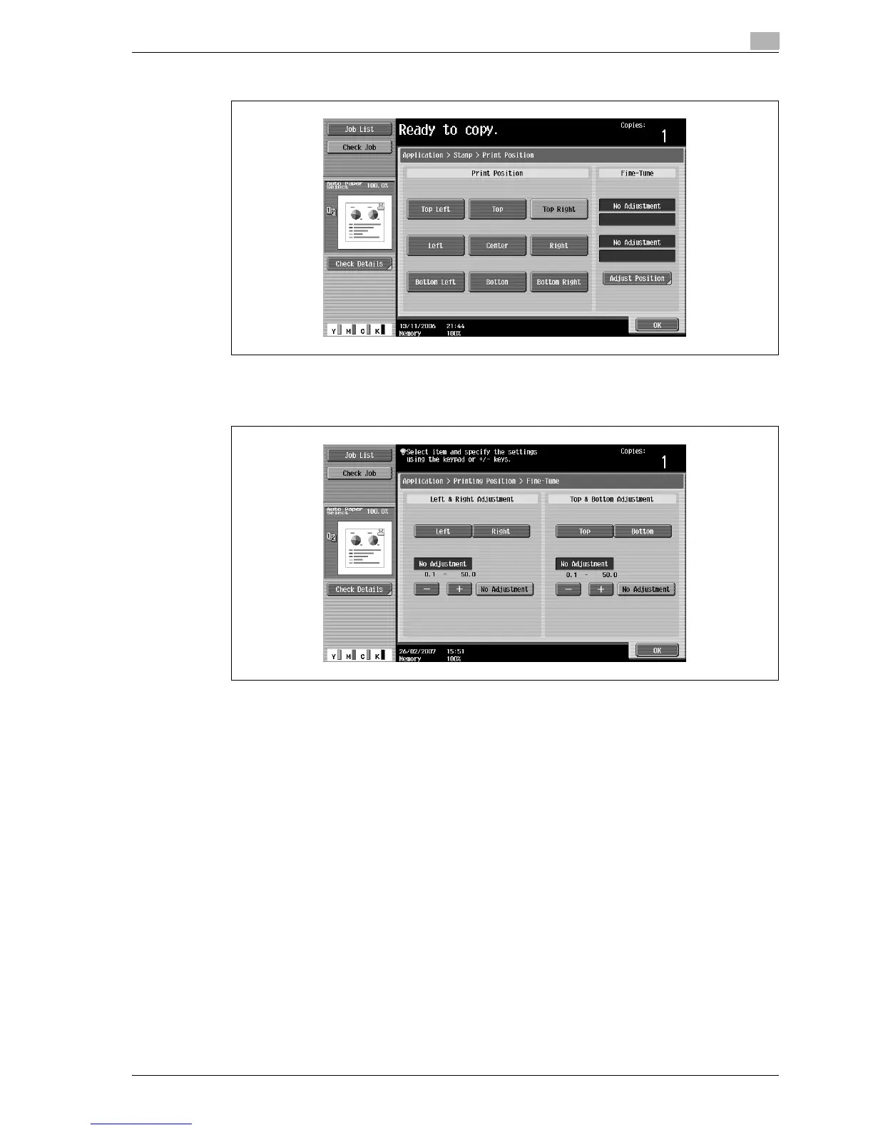 ā To make fine adjustments to the printing position, touch [Adjust Position]. Select the desired