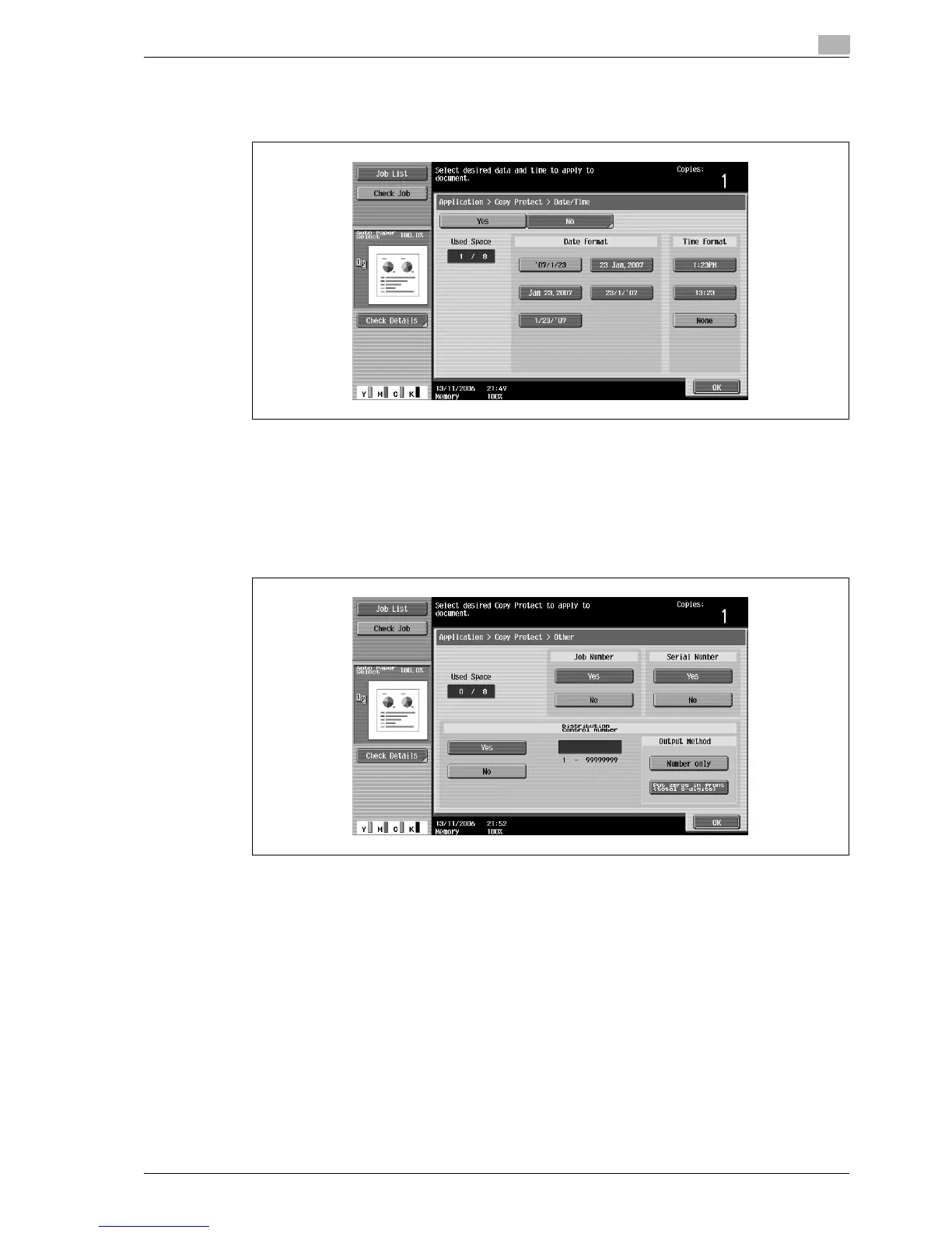 – The copy protection date and time that is printed is the date and time when the original is scanned.