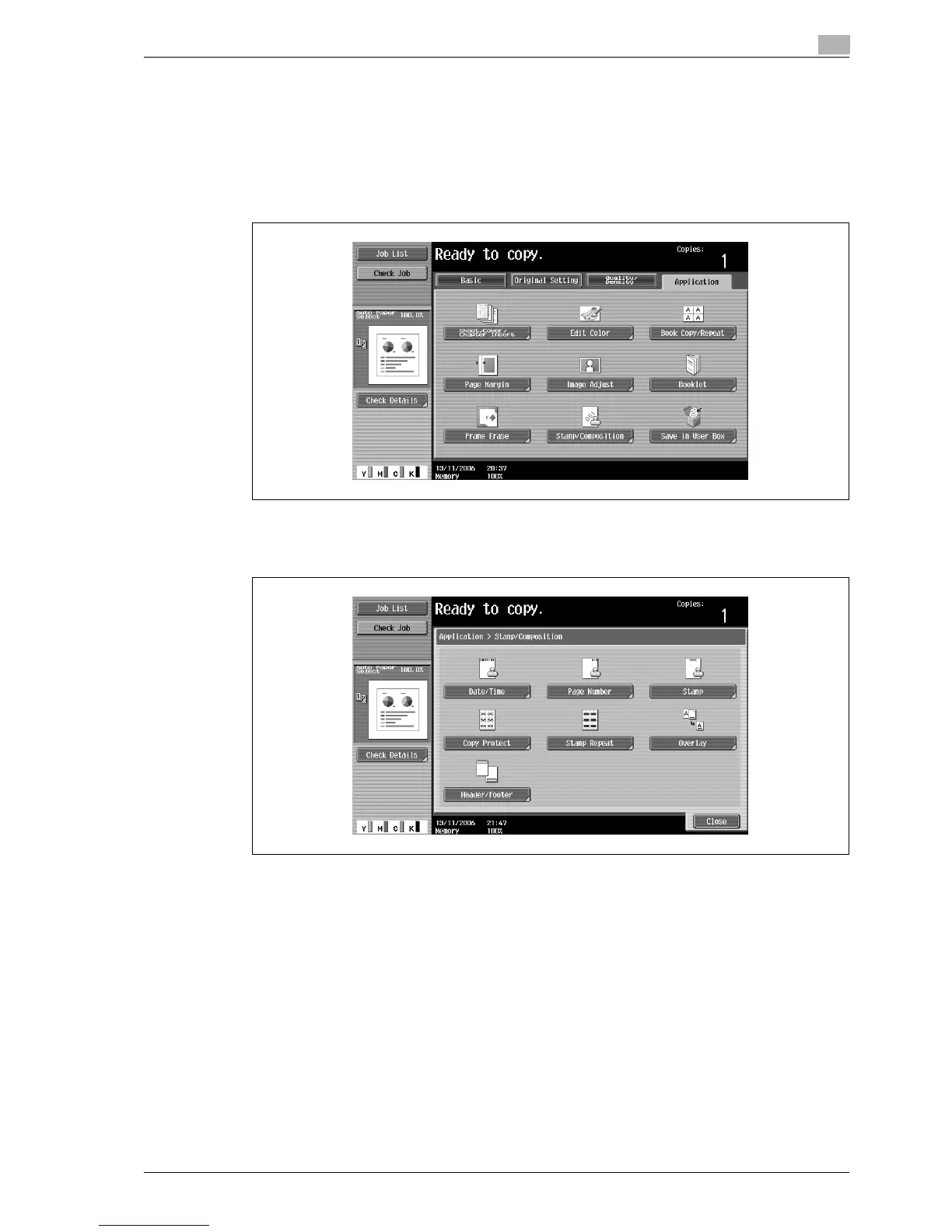 2 Touch [Application], and then touch [Stamp/Composition].