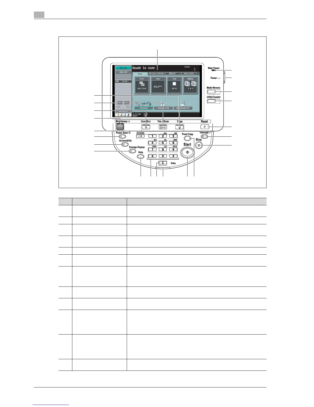 10 [Start] key Press to start the copy, scan or fax operation. When this machine is ready to
