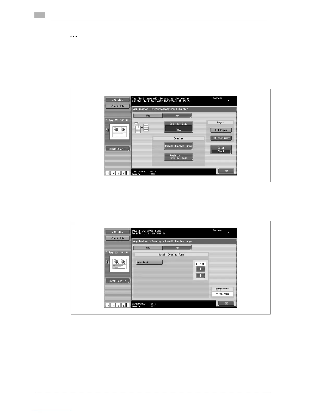 2 Touch the button for the registered overlay to be used, and then touch [OK].