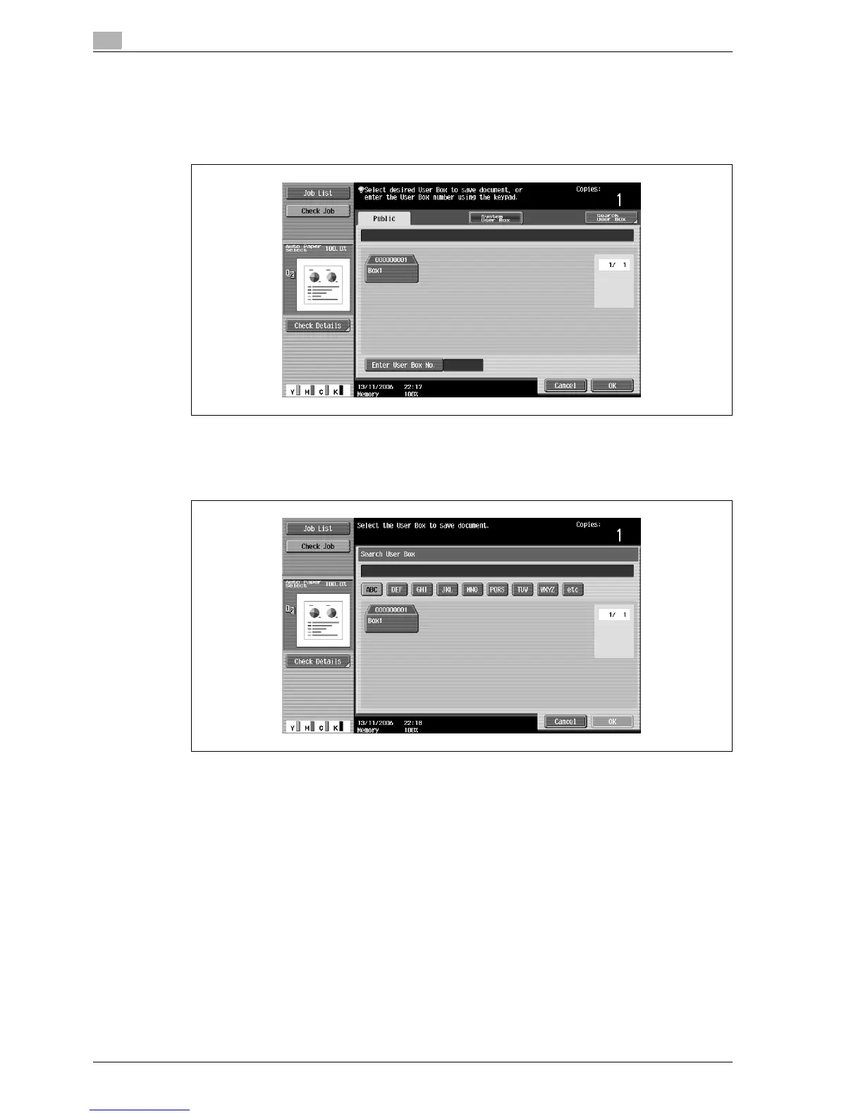 – To type in a user box number to specify the user box, touch [Enter User Box No.].