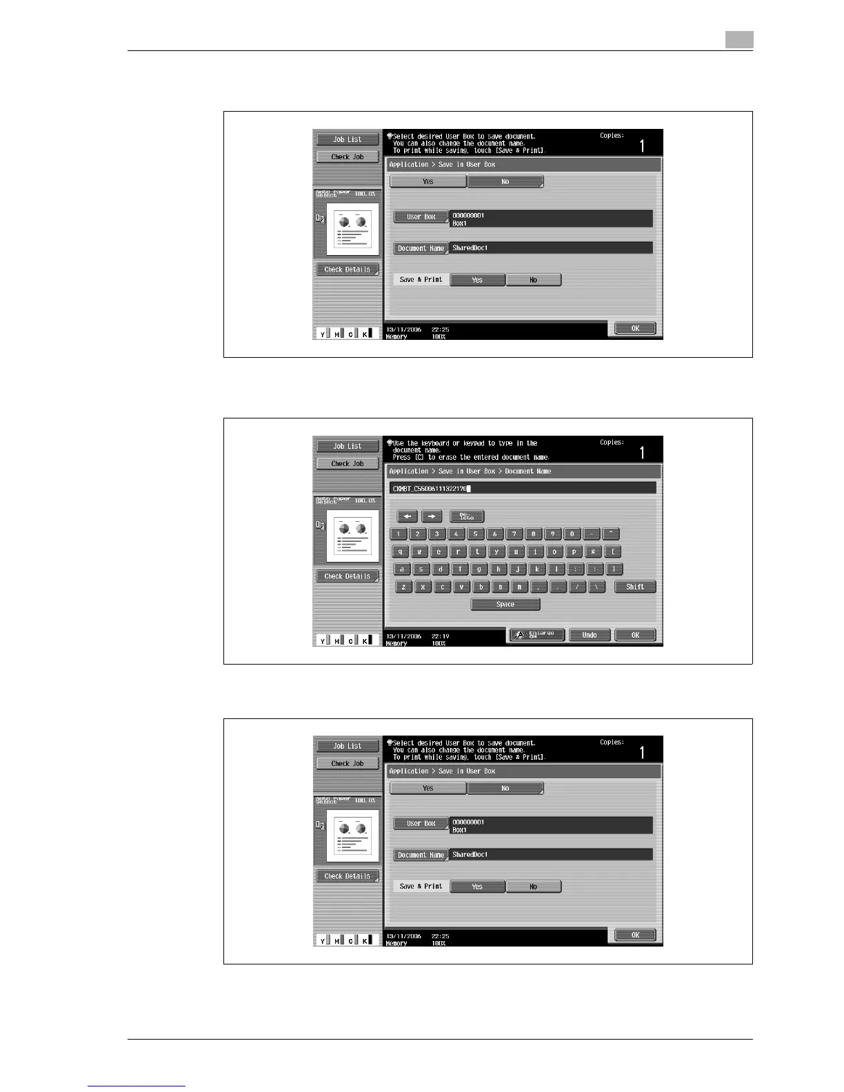 8 Select whether or not a copy will also be printed when the data is saved. To print a copy, touch [Yes]