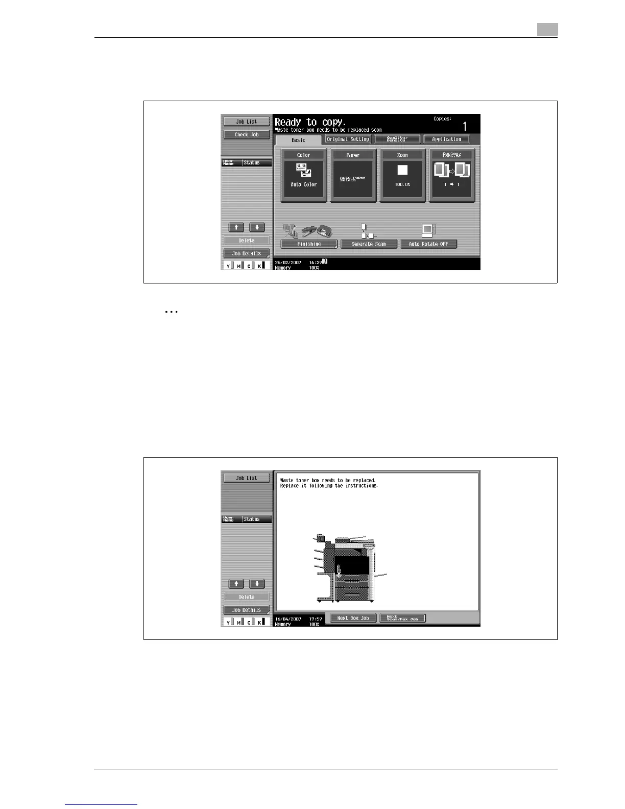 Replace it following the instructions." appears differs depending on the specified copy settings and the