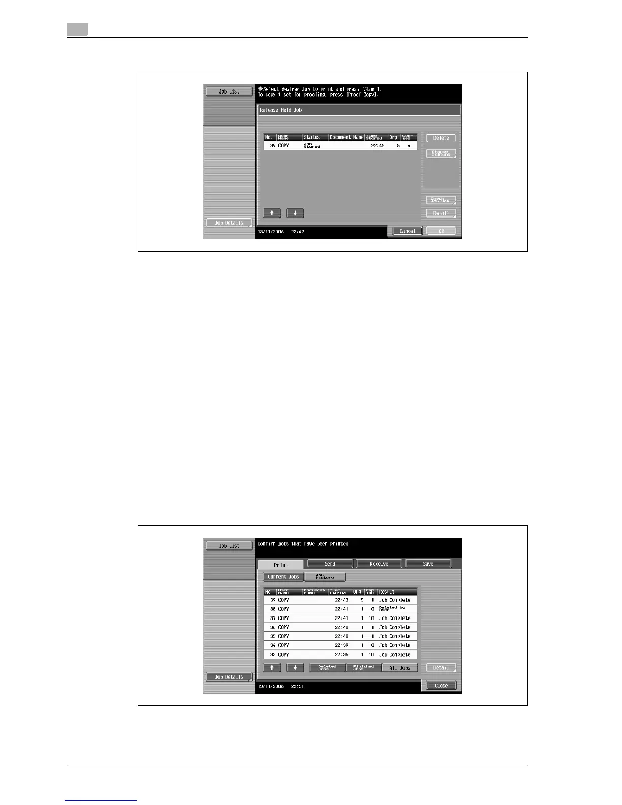 From the Release Held Job screen, proof copies of stored jobs can be printed. For details, refer to