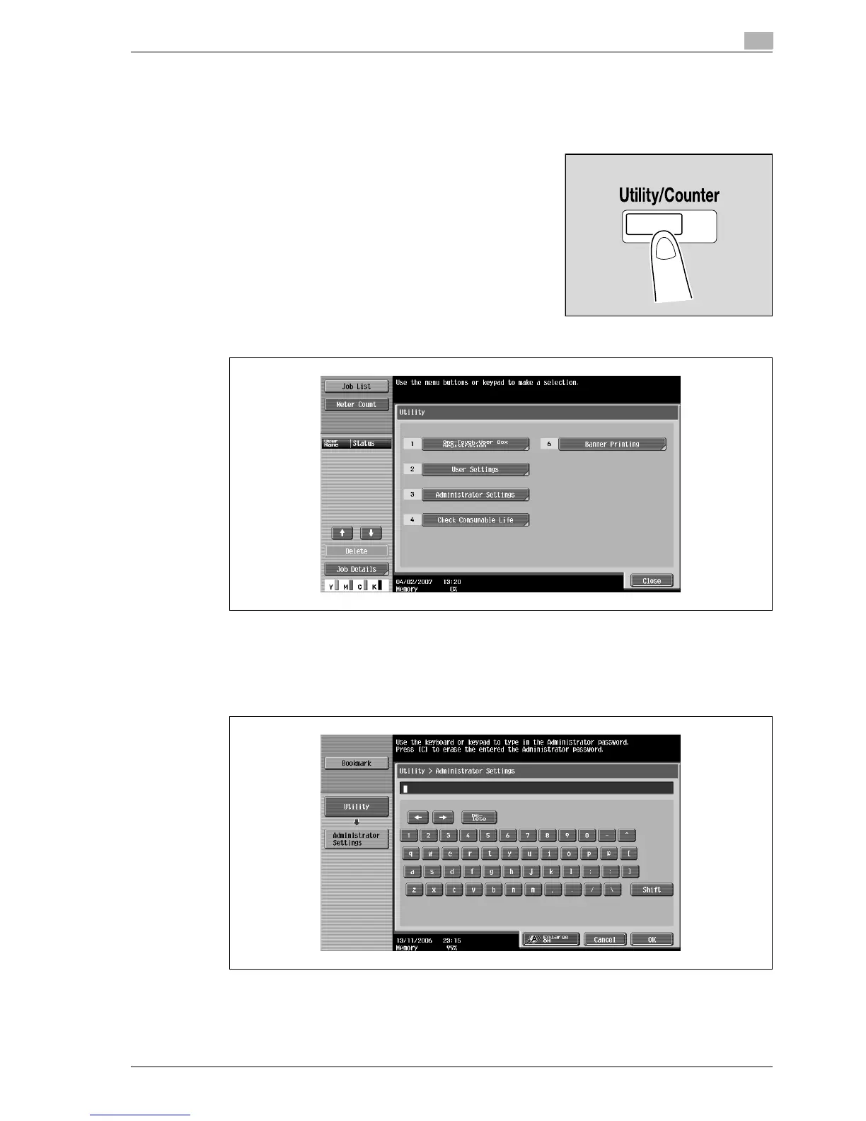 button. For [3 Administrator Setting], press the [3] key in the keypad.