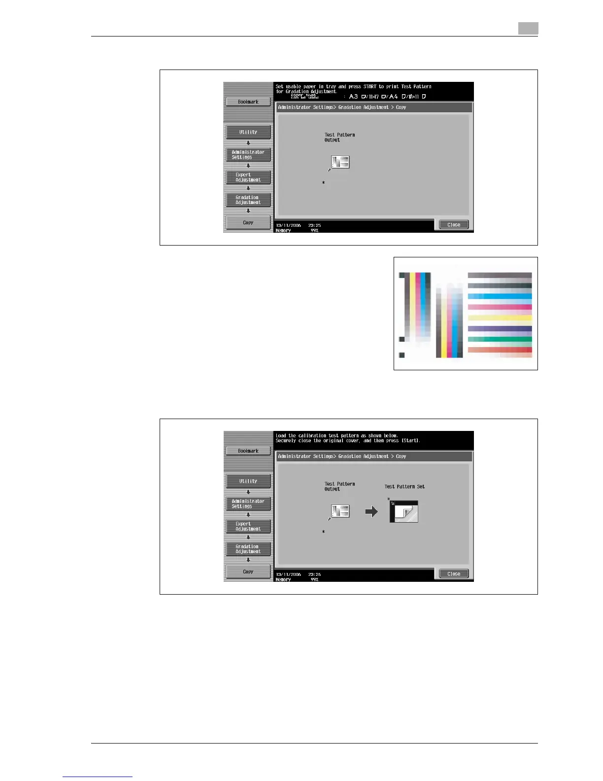 9 Place on top of the test pattern 10 or more sheets of blank paper of the same size as the printed test