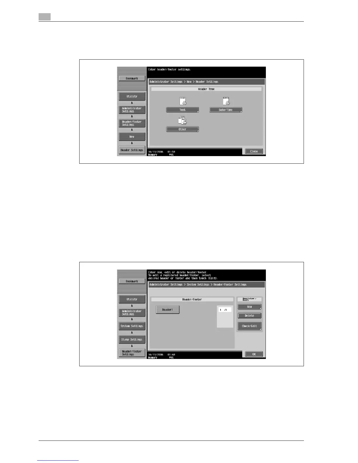 1 In the Header/Footer Settings screen, touch the button of the header/footer to be edited.