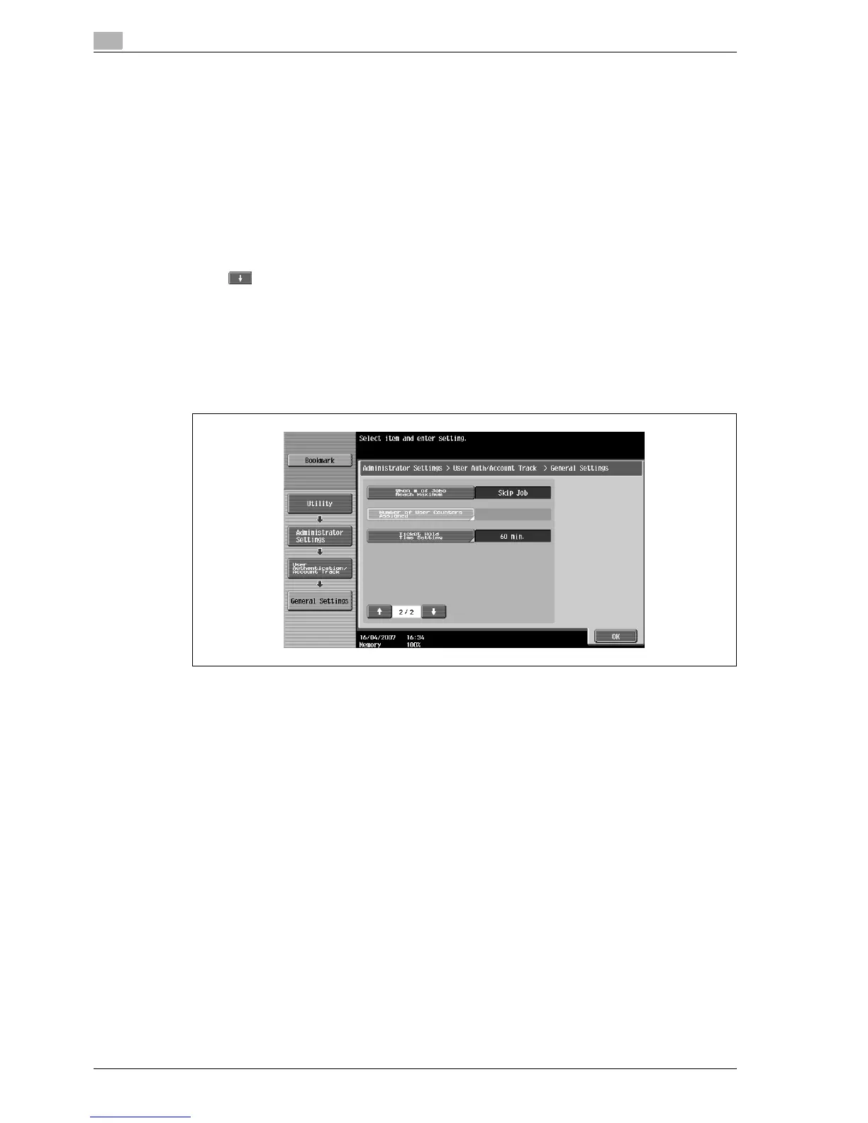 – To skip the job when the limit specified with user authentication or account track is reached, touch