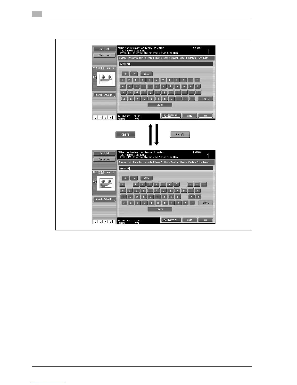 Touching [Shift] switches the keyboard display between lowercase letters (numbers) and uppercase letters