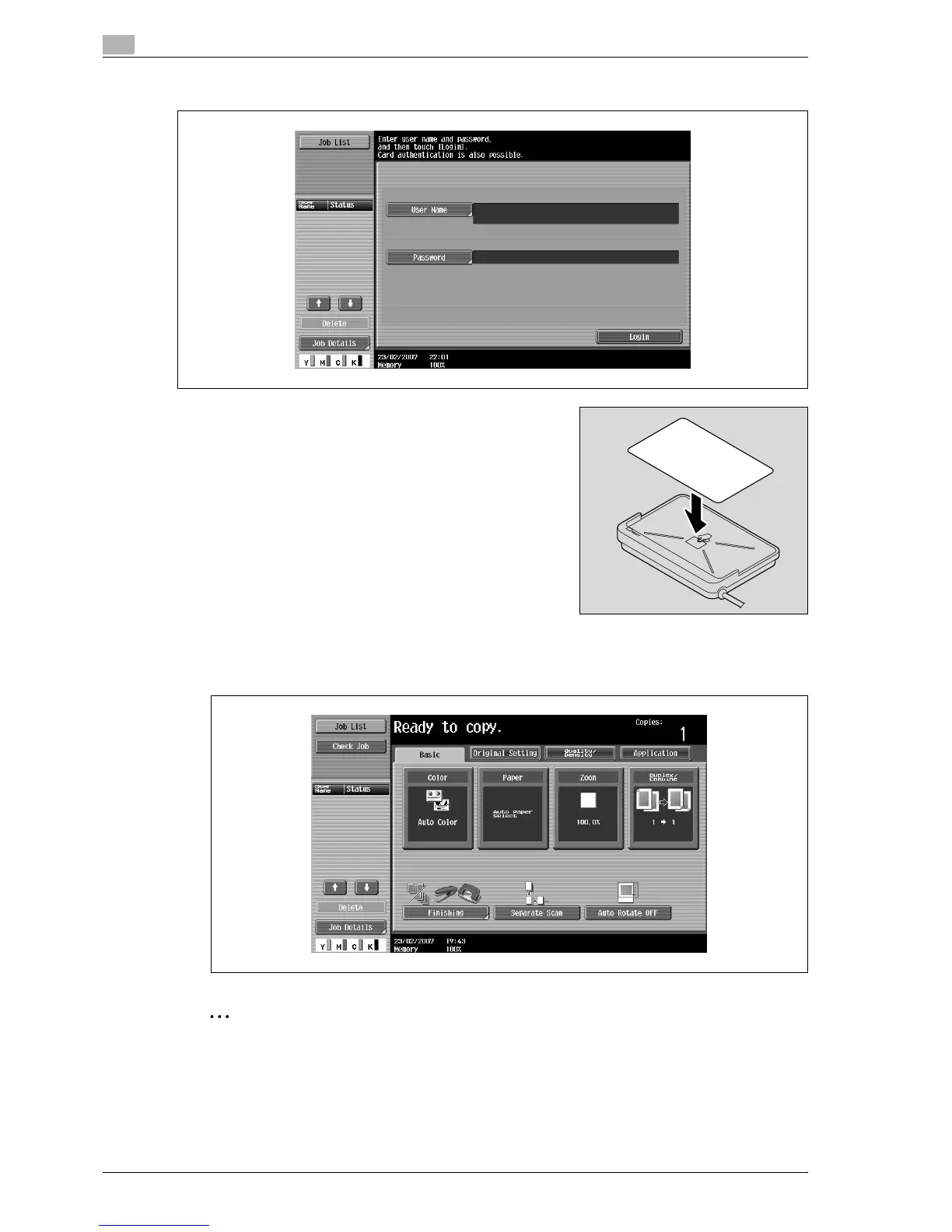 2 Type in the password and then touch [Login] or press the [Access] key.