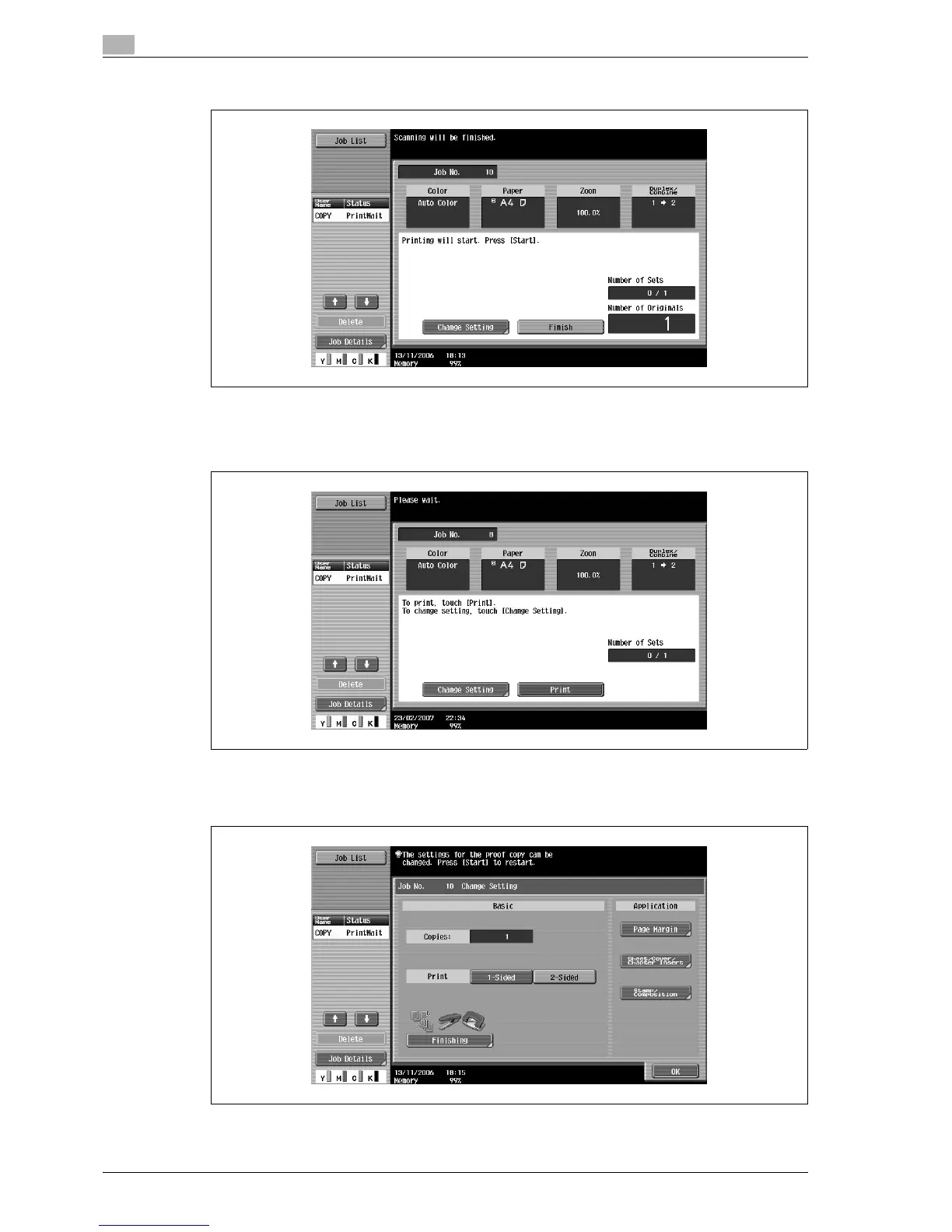 changed. To change the copy settings, touch [Change Setting], and then touch [OK] after changing