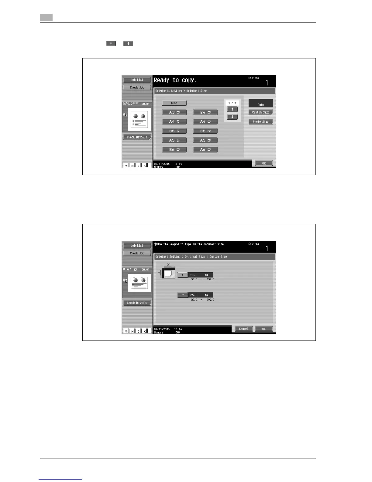 – To specify a custom size, touch [Custom Size] to display the Custom Size screen. Touch [X] or [Y]