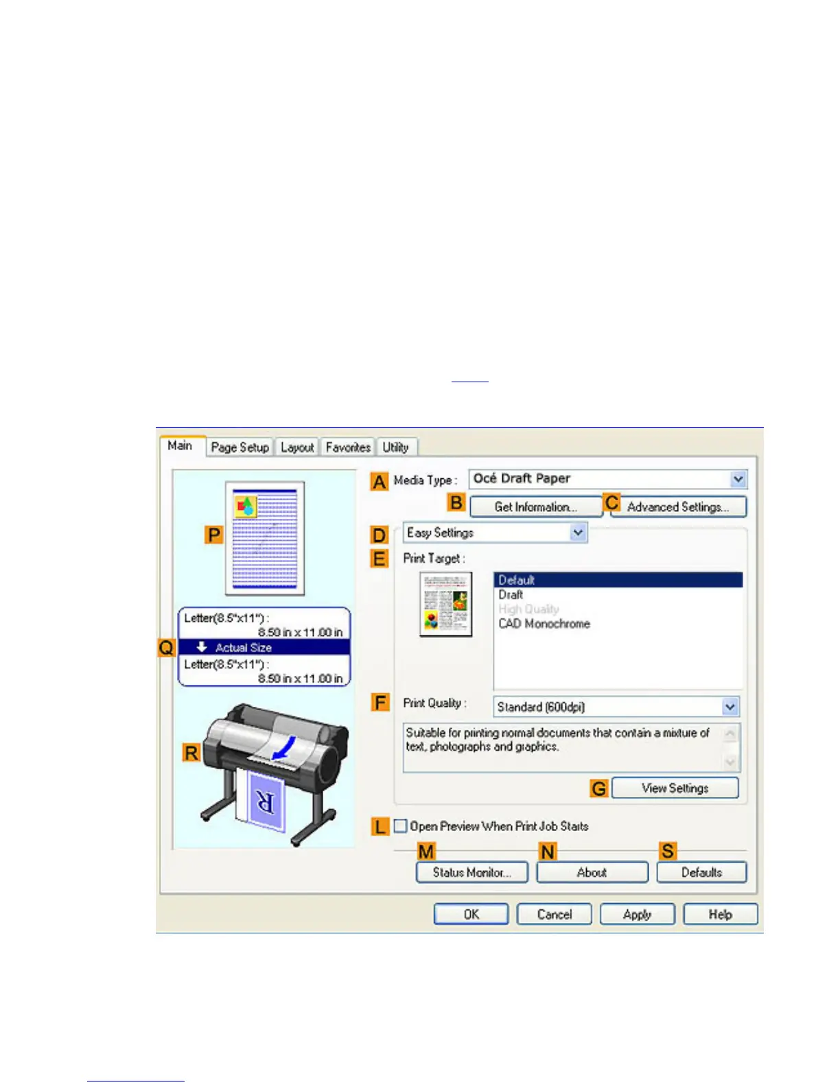 2. Select the printer in the dialog box, and then display the printer driver dialog box.(See "Accessing