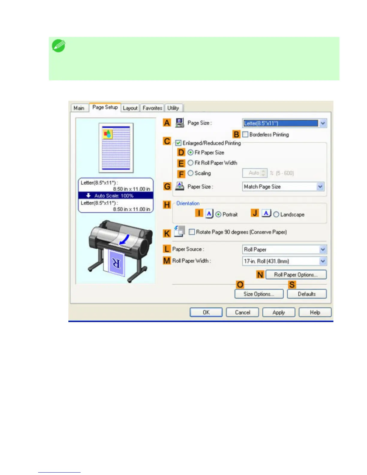7. In APage Size, click the size of the original as specified in the application software. In this case,