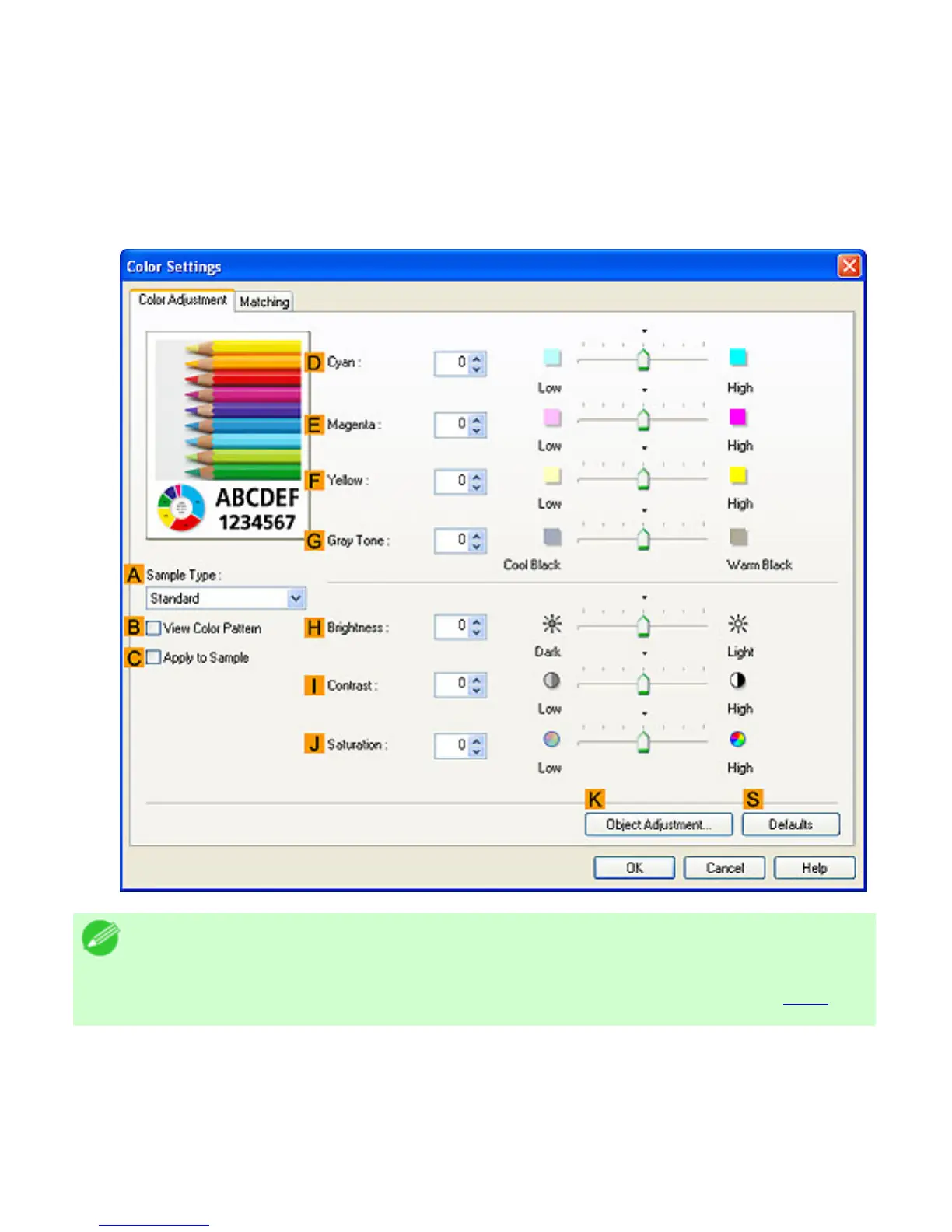 ・ To display the Color Adjustment sheet, on the Main sheet, click Color