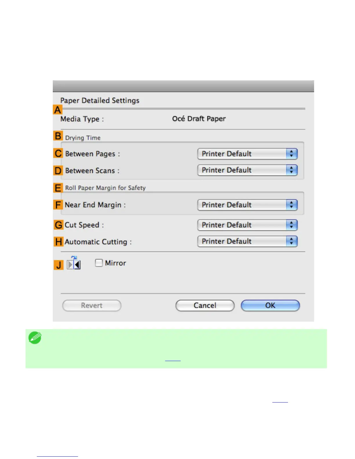 The Paper Detailed Settings dialog box offers the following settings. For details on settings items, refer