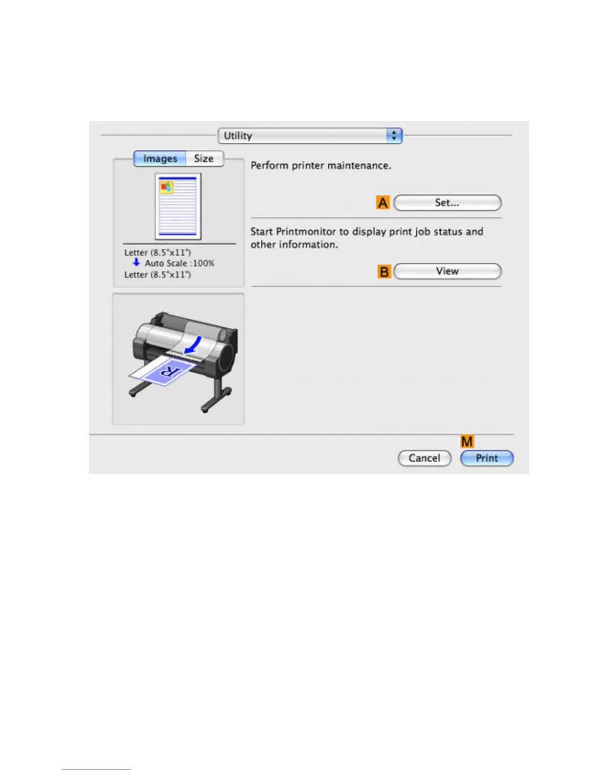 Click to start Printmonitor, which enables you to view the status of print jobs.