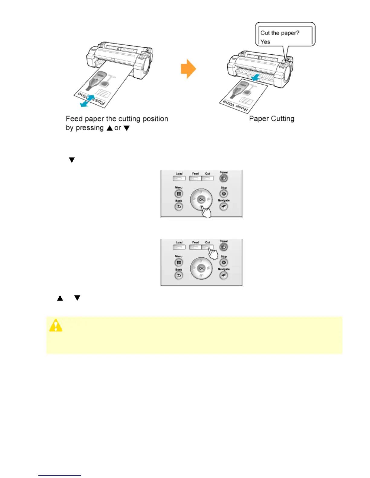 2. Press the button to advance the roll to the position for cutting.