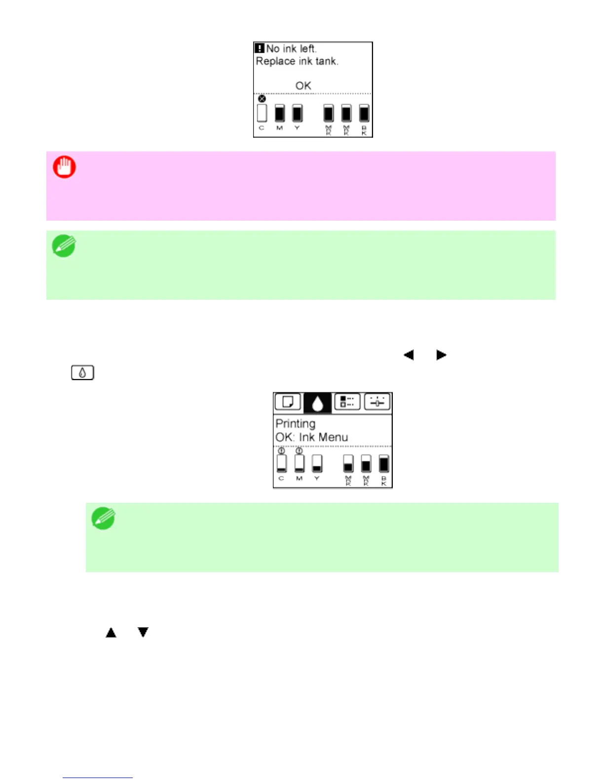 Access the menu for Ink Tank replacement
