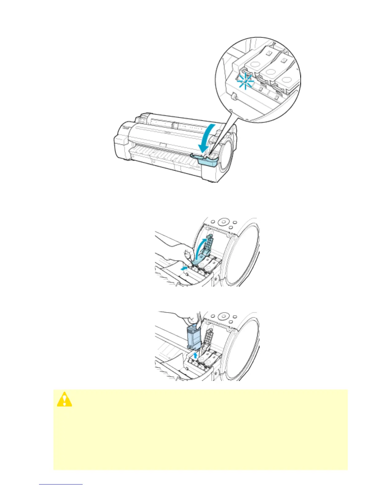 2. Press the tip of the Ink Tank Lock Lever of the color for replacement horizontally and pull