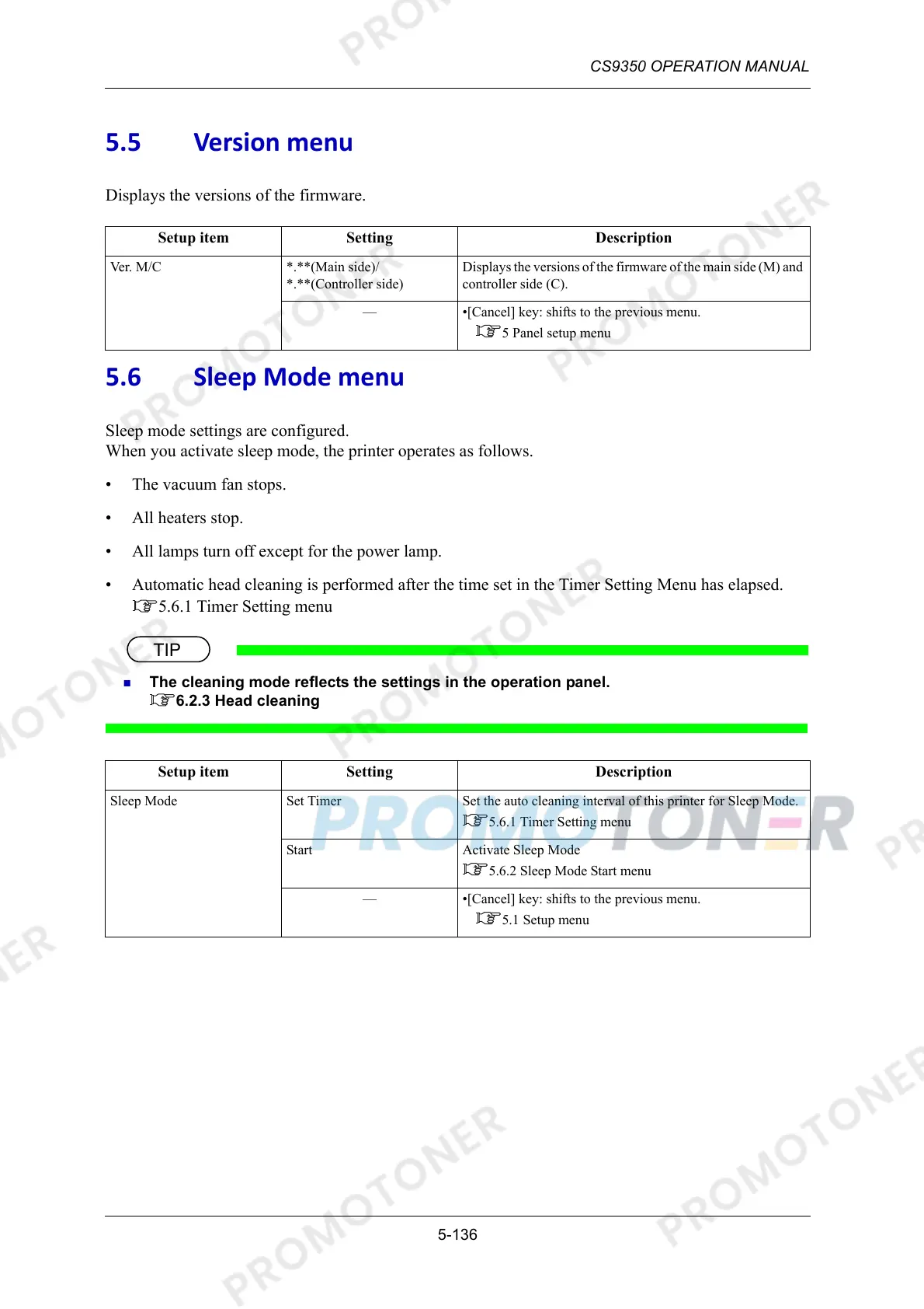 Sleep Mode Set Timer Set the auto cleaning interval of this printer for Sleep Mode.