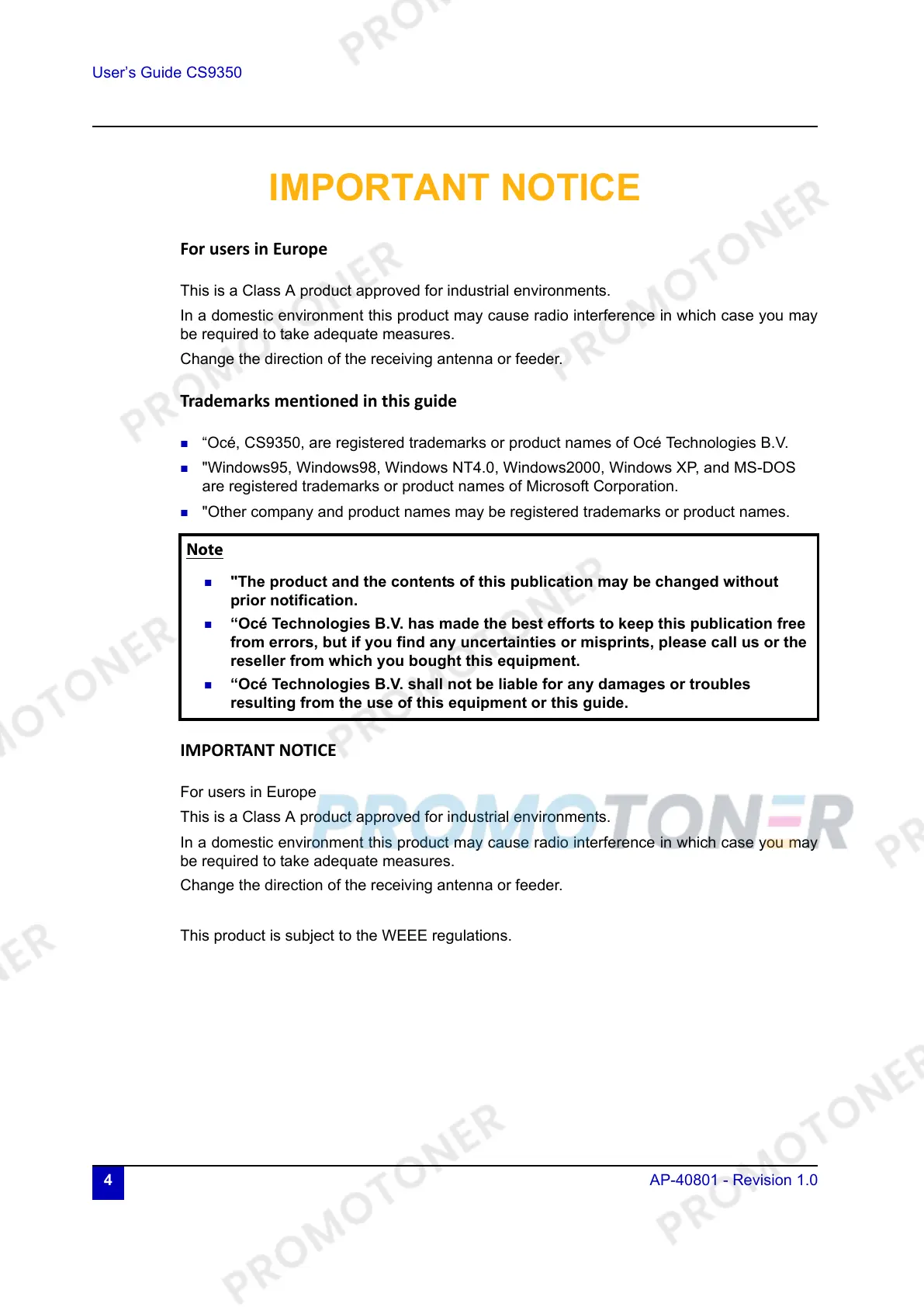 “Océ, CS9350, are registered trademarks or product names of Océ Technologies B.V.